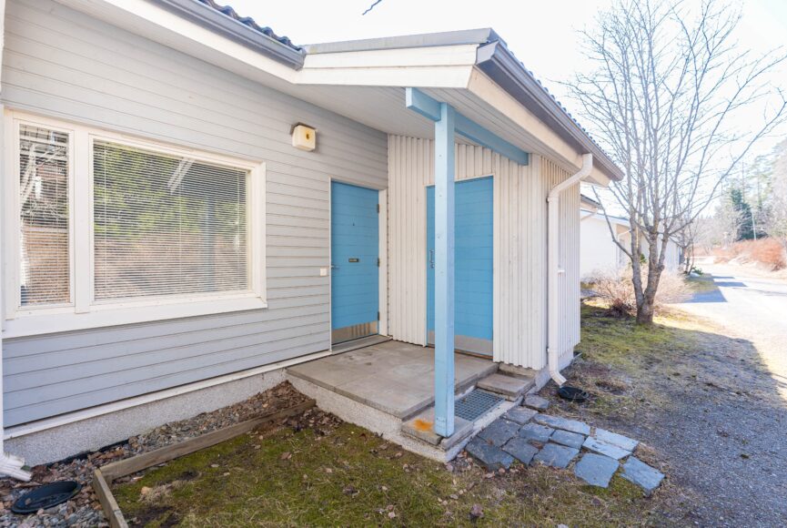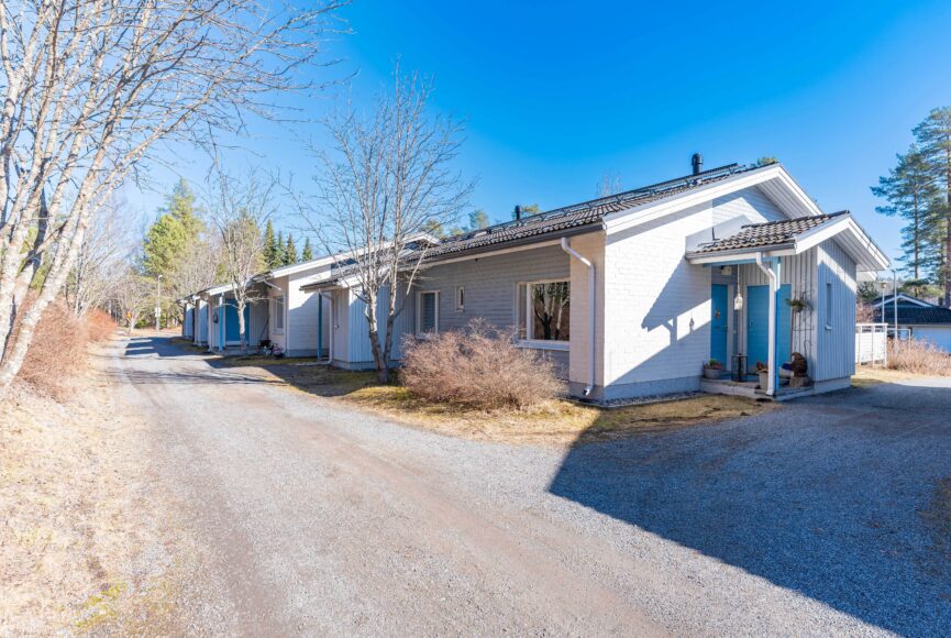 Rannan tuntumassa oleva rivitalo, rauhallisella alueella Pitkäjärvellä.