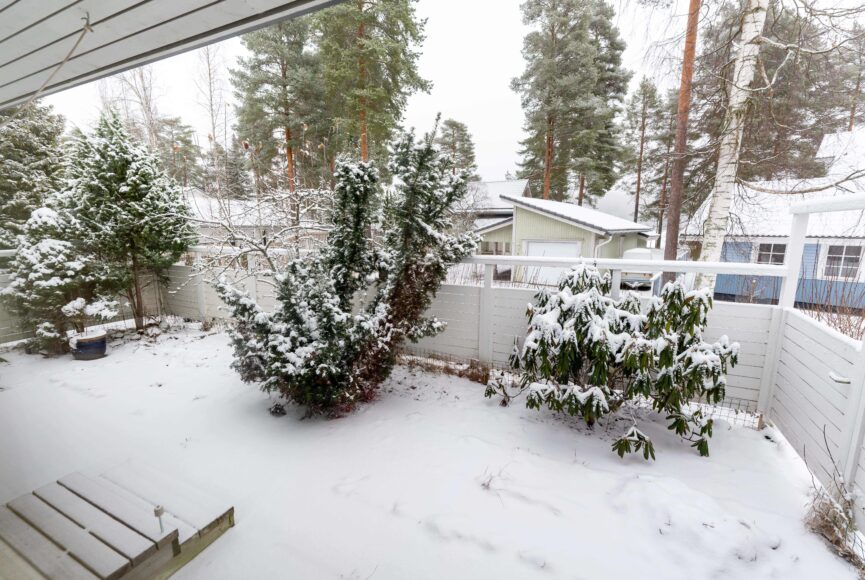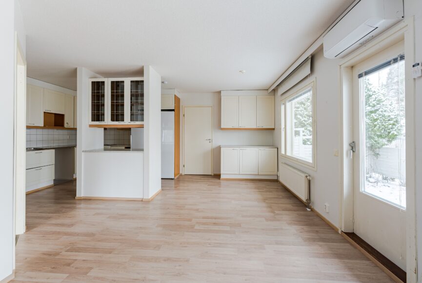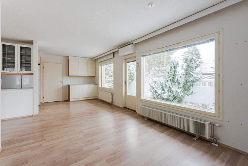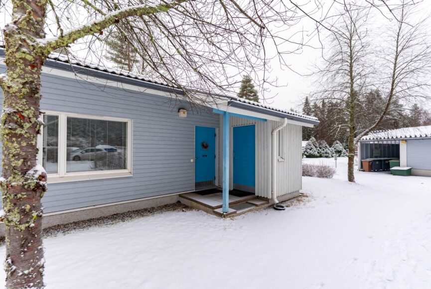 Rannan tuntumassa oleva rivitaloa, rauhallisella alueella Pitkäjärvellä.