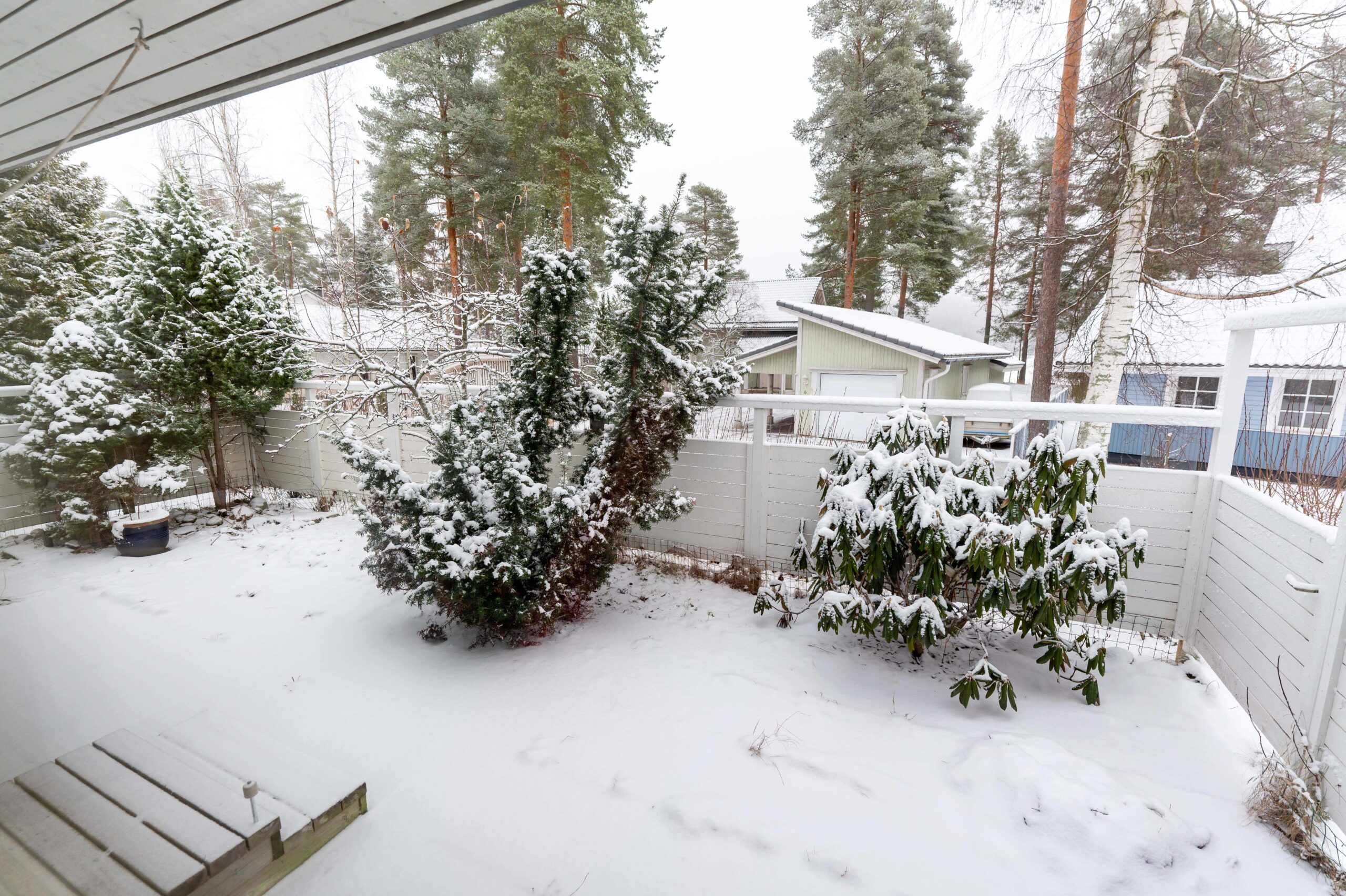 Rannan tuntumassa oleva rivitaloa, rauhallisella alueella Pitkäjärvellä.